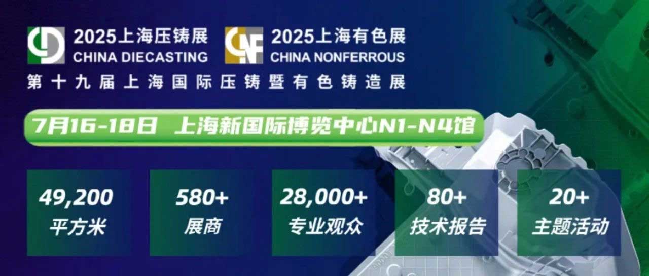 2025年7月16日至18日,由中国机械工程学会铸造分会主办的第十九届上海国际压铸暨有色铸造展览会在上海新国际博览中心隆重举行。作为亚洲乃至全球压铸及有色铸造领域极具影响力的行业盛会,本次展会汇聚了来自国内外压铸产业链上下游的领军企业和创新力量,共同展示前沿技术、先进装备和广阔市场前景。